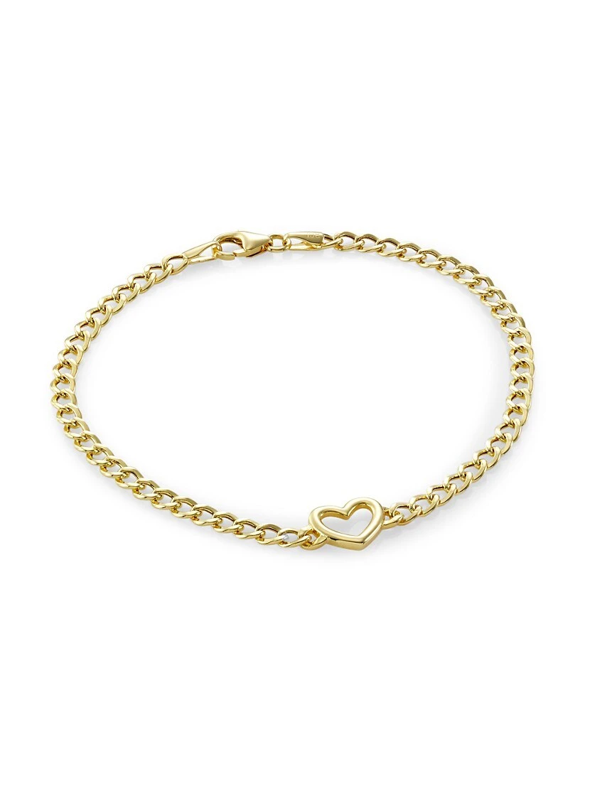 ONLY AT SAKS. Made of polished 14K gold, this elegant bracelet features an open heart charm joined to a curb chain.