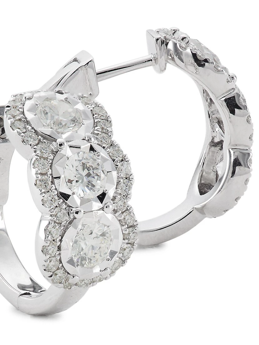 ONLY AT SAKS. Clusters of round brilliant-cut diamonds cover Saks Fifth Avenue Collection’s petite hoop earrings, crafted from polished white gold.