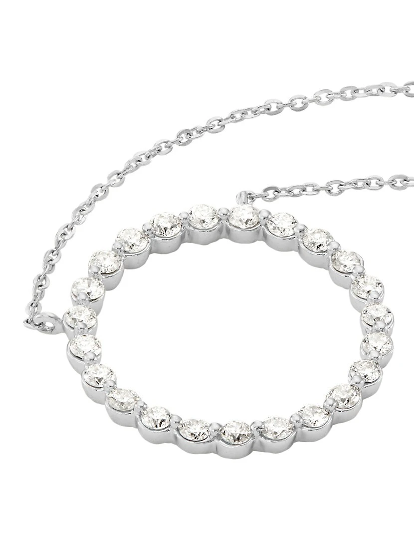 ONLY AT SAKS. Made of 14K white gold, Saks Fifth Avenue Collection’s necklace features a diamond-encrusted circle pendant joined to a fine cable chain.