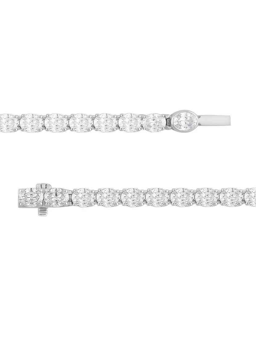 ONLY AT SAKS. Crafted of 14K white gold, Saks Fifth Avenue Collection’s tennis bracelet glitters with oval natural diamonds. A box clasp secures this stunning accessory.