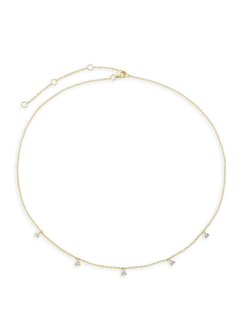 ONLY AT SAKS. Made of 14K yellow gold, Saks Fifth Avenue Collection’s necklace features five dangling brilliant-cut diamonds.