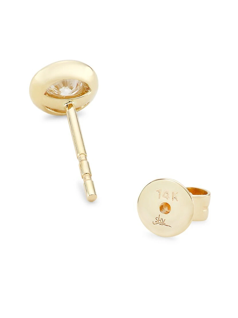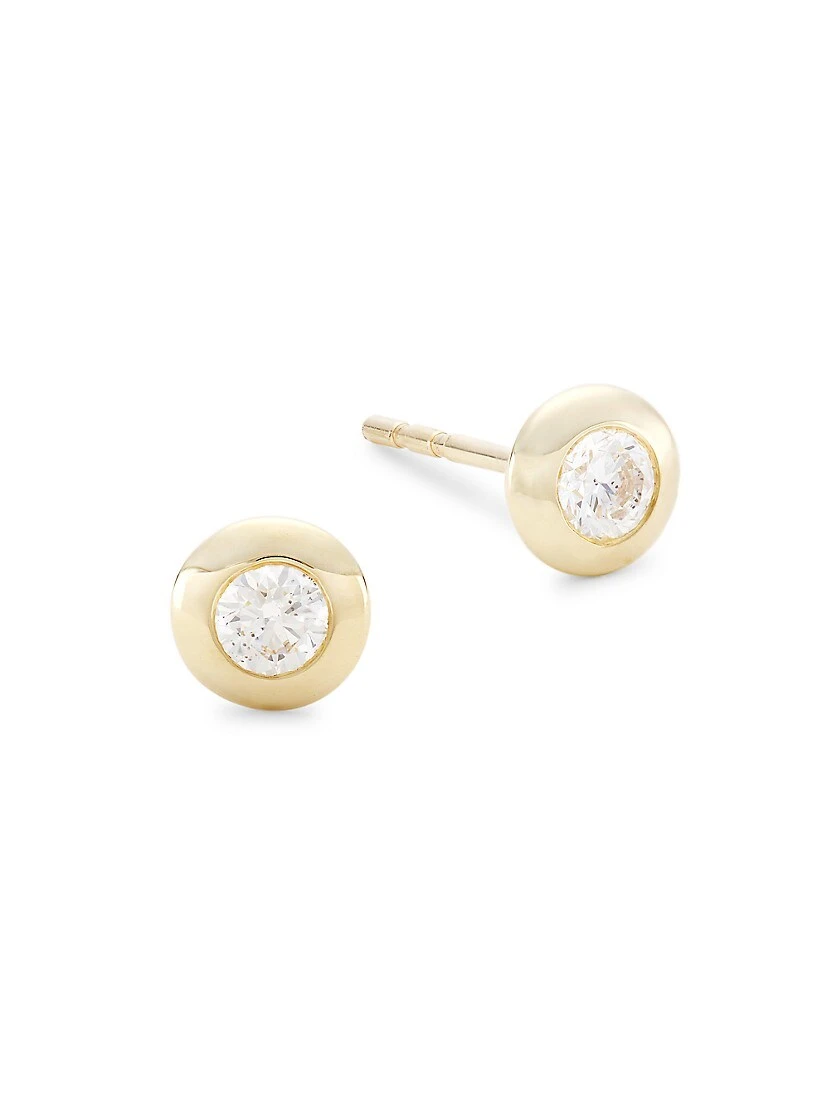 ONLY AT SAKS. Made of 14K yellow gold, Saks Fifth Avenue Collection’s stud earrings feature round brilliant-cut diamonds. These glittering gemstones rest in polished bezel settings.