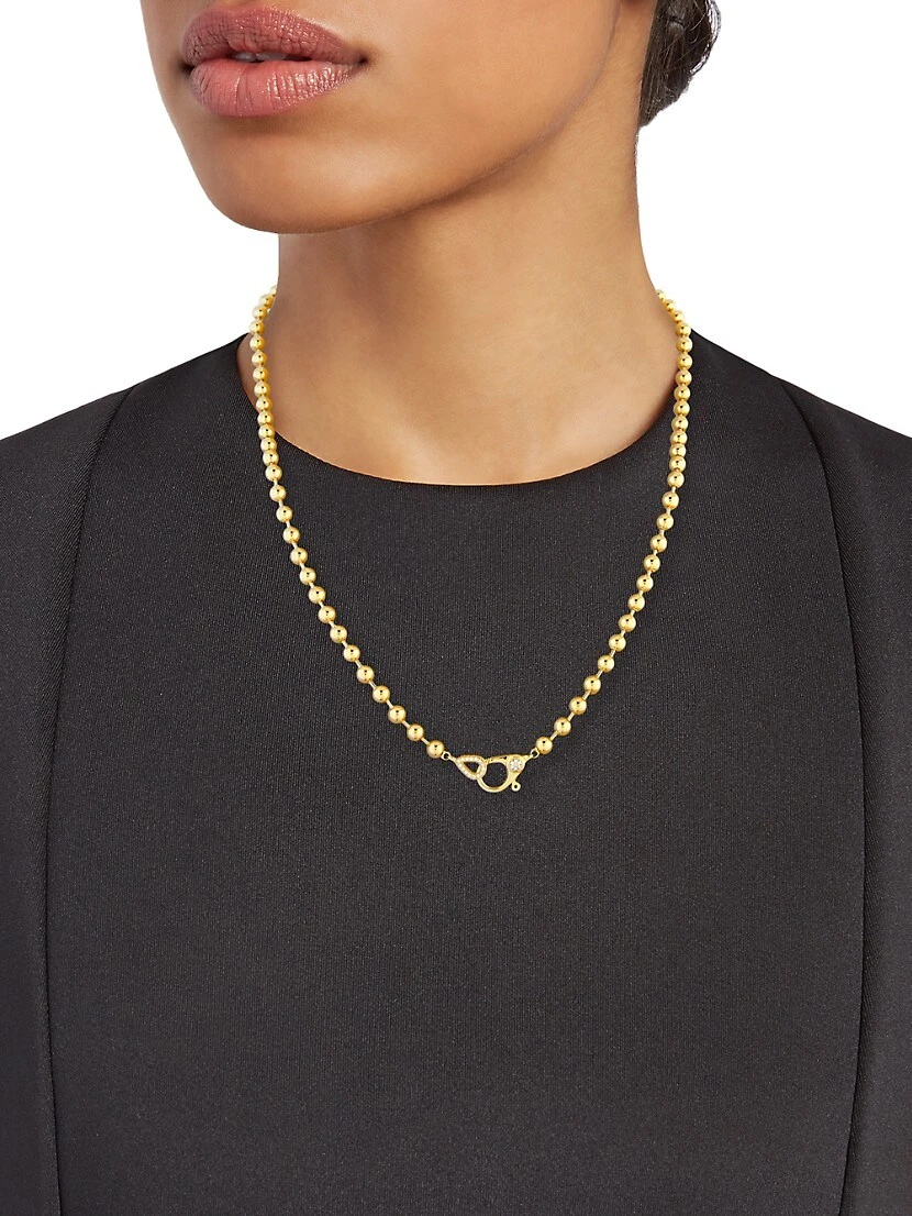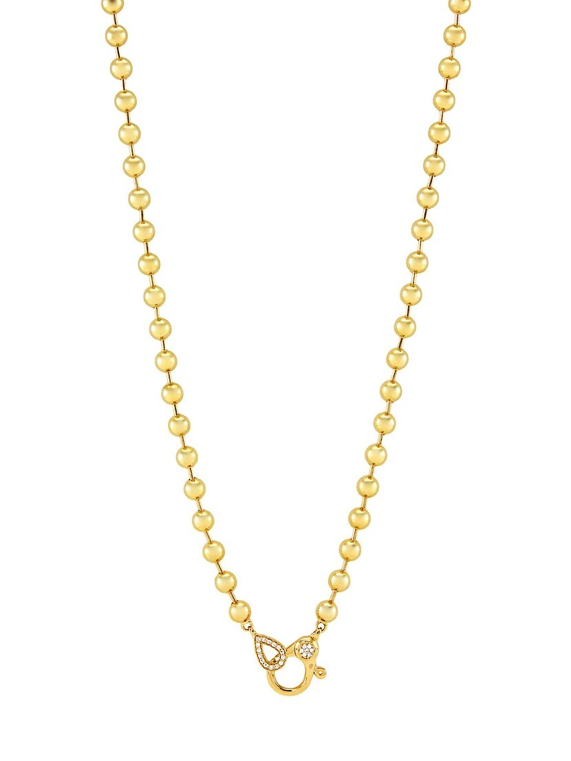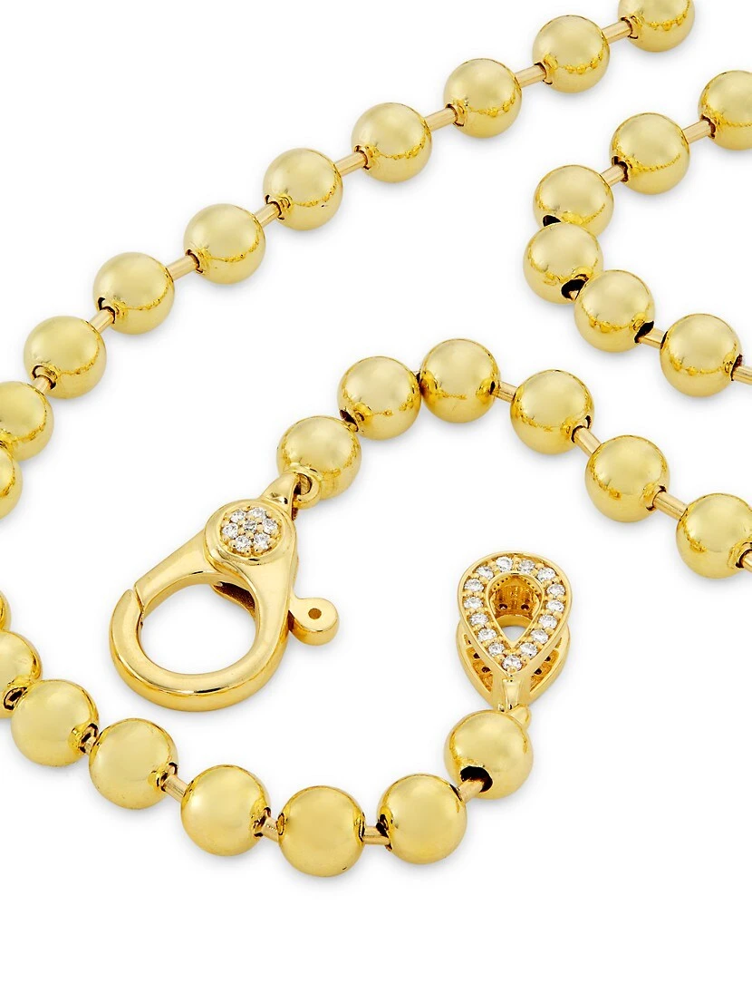ONLY AT SAKS. Crafted of polished 14K yellow gold, Saks Fifth Avenue Collection’s ball-chain necklace secures at the front with a shimmering diamond-accented lobster clasp.