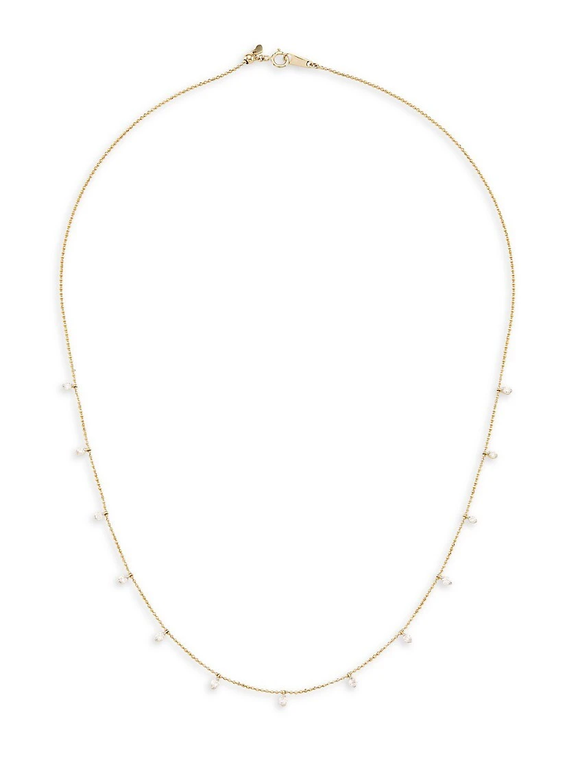 ONLY AT SAKS. Petite prong-set diamonds suspend from Saks Fifth Avenue Collection’s delicate gold chain necklace.