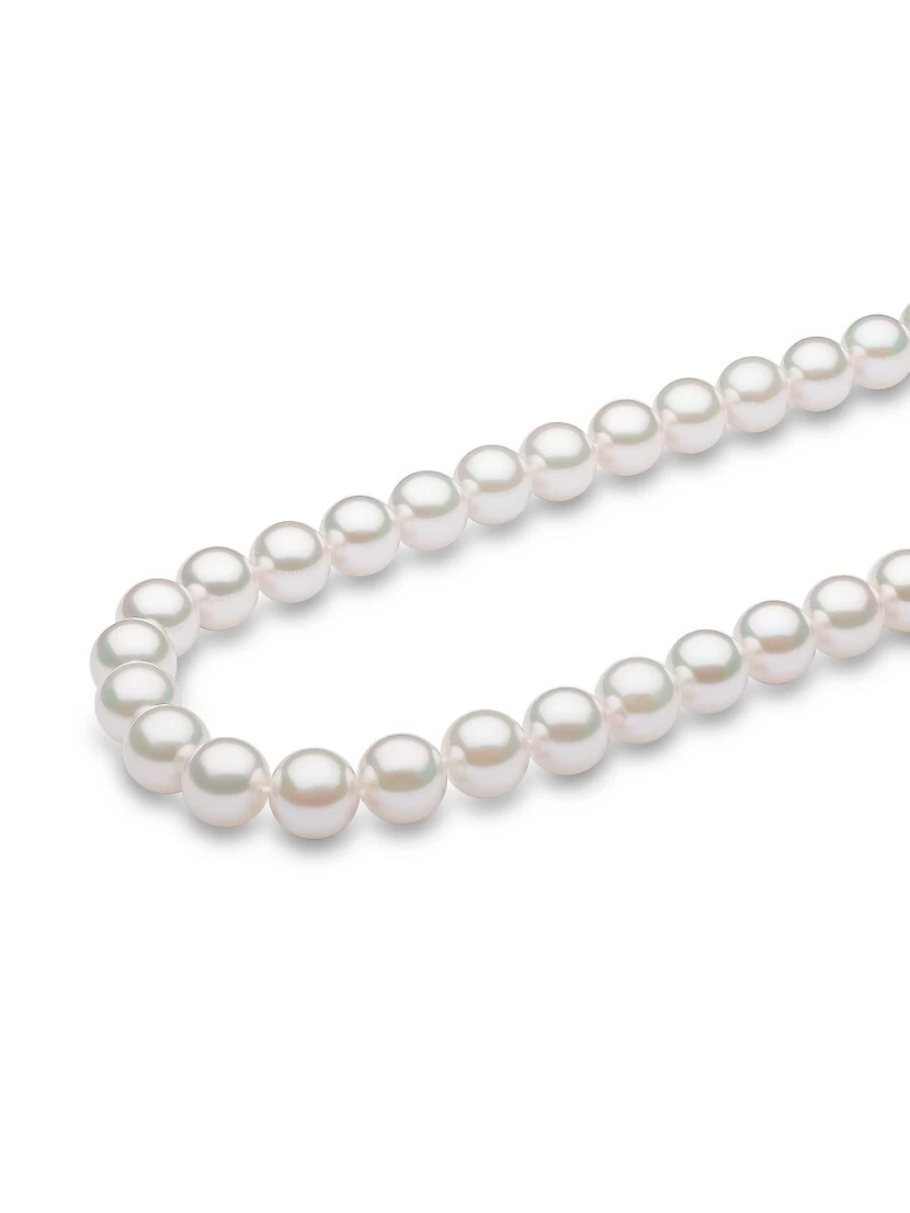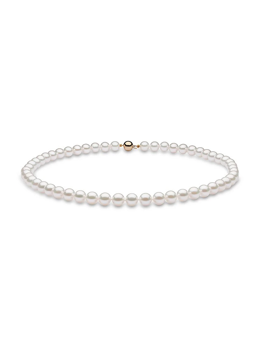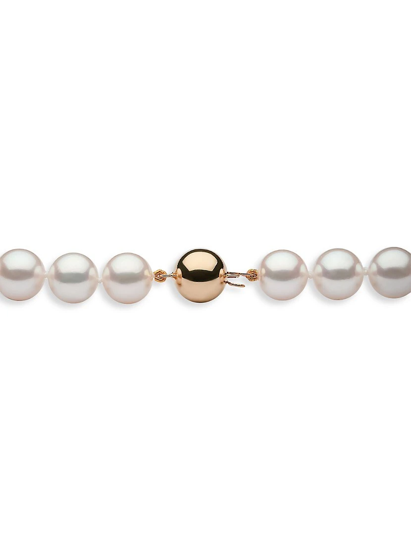 ONLY AT SAKS. This classic necklace is composed of luminous white round Akoya pearls. Securing with a 14K yellow gold ball clasp, this elegant piece exudes timeless sophistication.