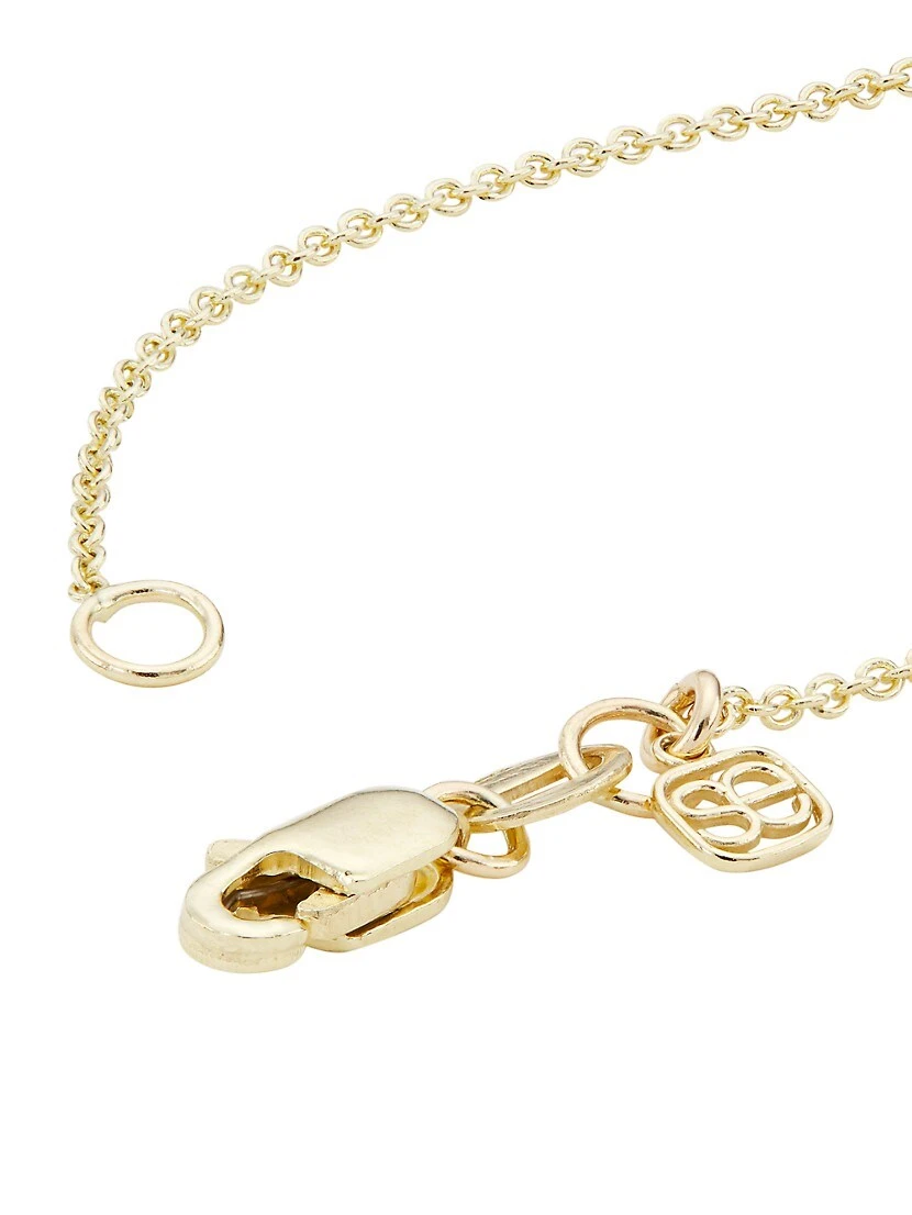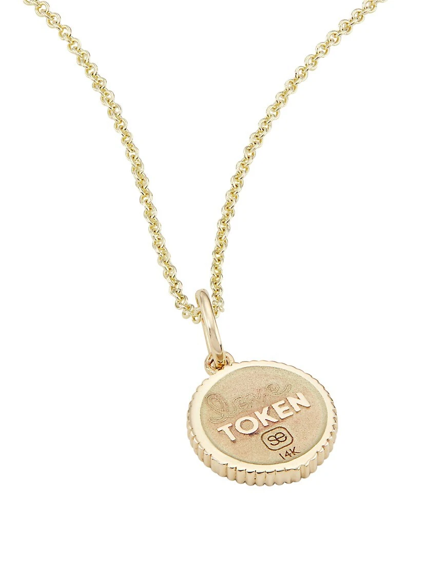 Sydney Evan’s 14K-yellow-gold necklace features a coin pendant embossed with a Cupid motif. Suspended from a fine cable chain, this playful charm is accented with a glittering round white diamond.