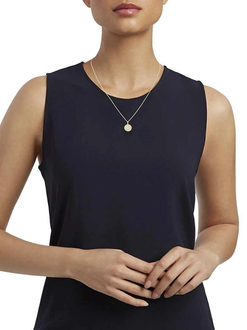 A 14K gold chain suspends a sparkling butterfly pendant set with 40 brilliant-cut diamonds in a halo of decliate daisies.