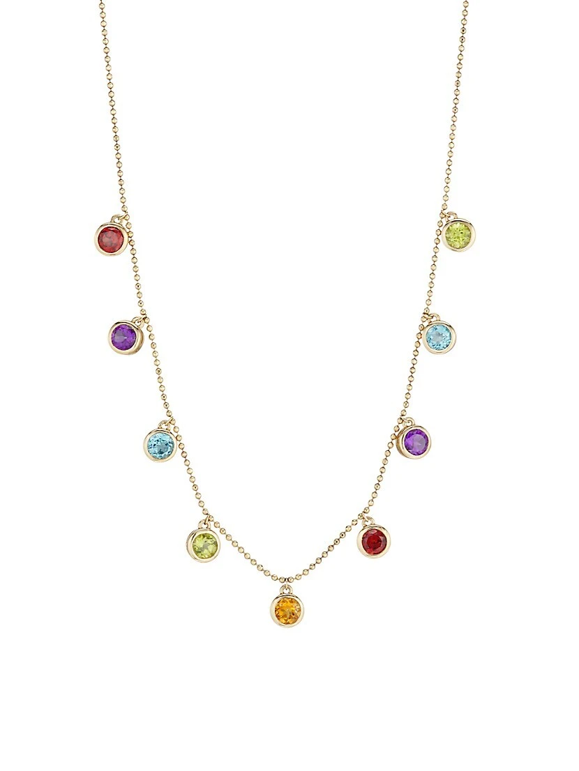 ONLY AT SAKS. This elegant necklace features sparkling round bezel-set gemstones that dangle from a 14K yellow gold ball chain for a vibrant pop of color.