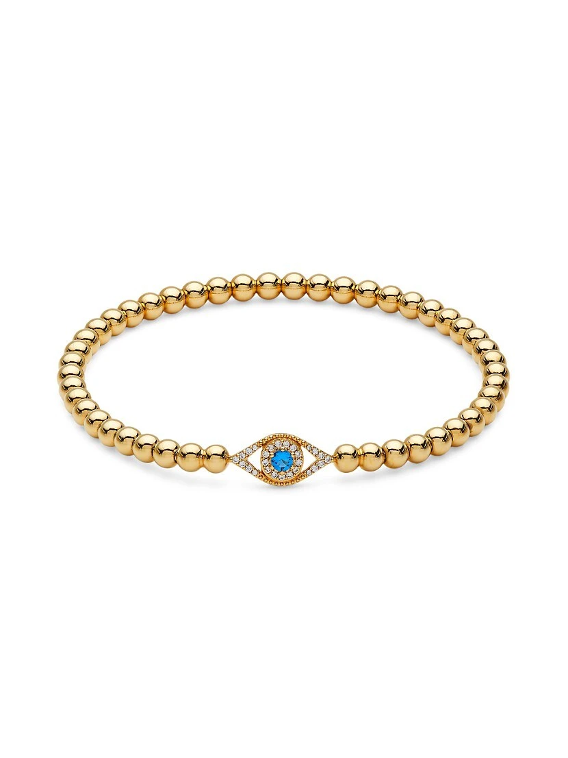 ONLY AT SAKS. Stretch beaded bracelet finished in an 18K goldplated sterling silver with cubic zirconia accents.