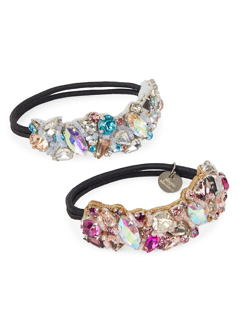 Deepa Gurnani’s Adreanna ponytail set is handmade in India, featuring gleaming mult-shaped crystals and decorative glass beads.