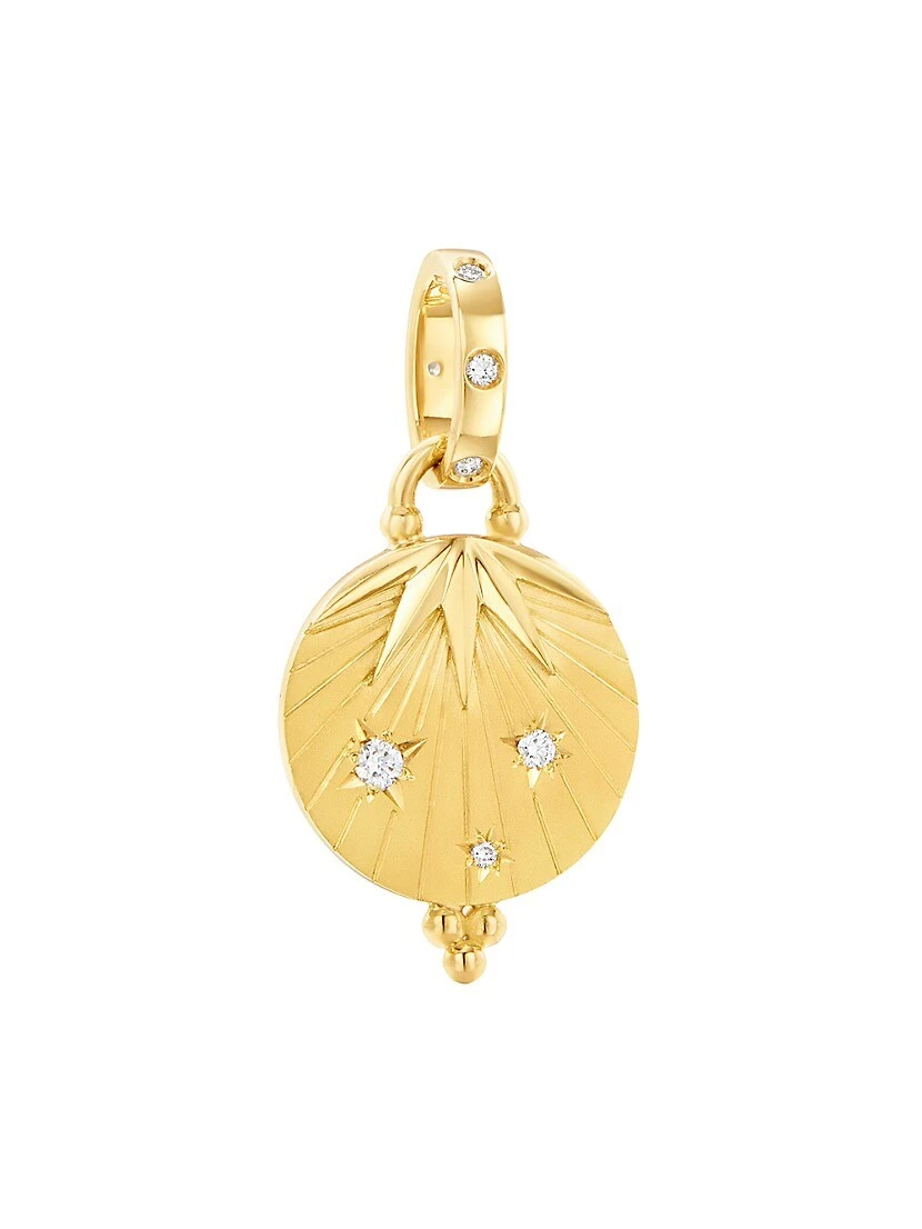 From the Celestial Collection. Showcasing a celestial motif, this 18K yellow gold pendant is studded with shimmering white diamonds that rest in star-shaped settings.