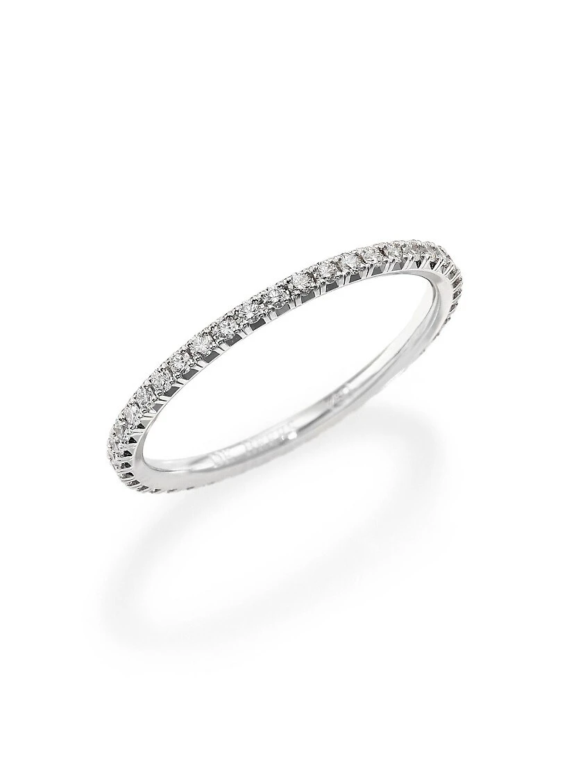 From the De Beers Aura Collection. Diamonds radiate an aura of soft, delicate shimmer upon a slender ring of 18k white gold.