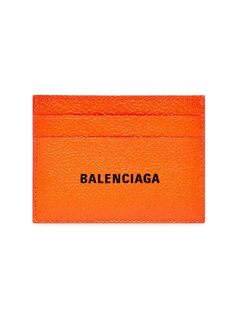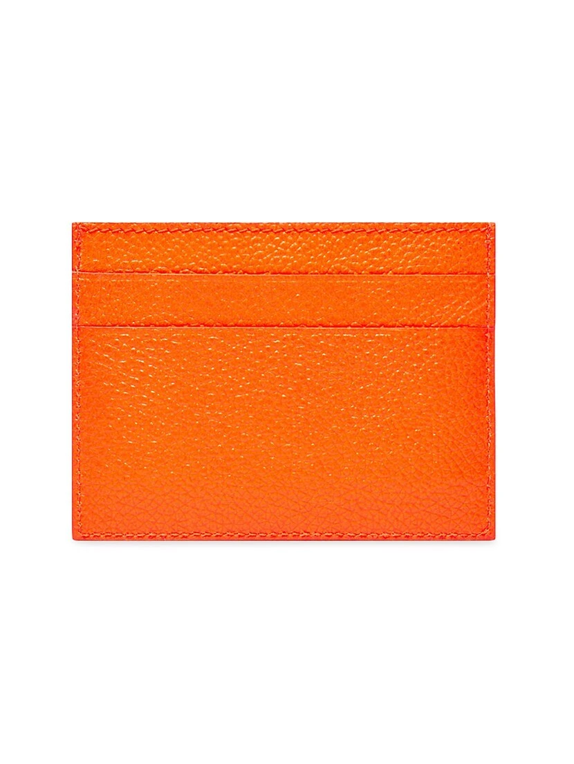Cash card holder in neon orange and black grained calfskin.