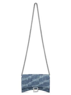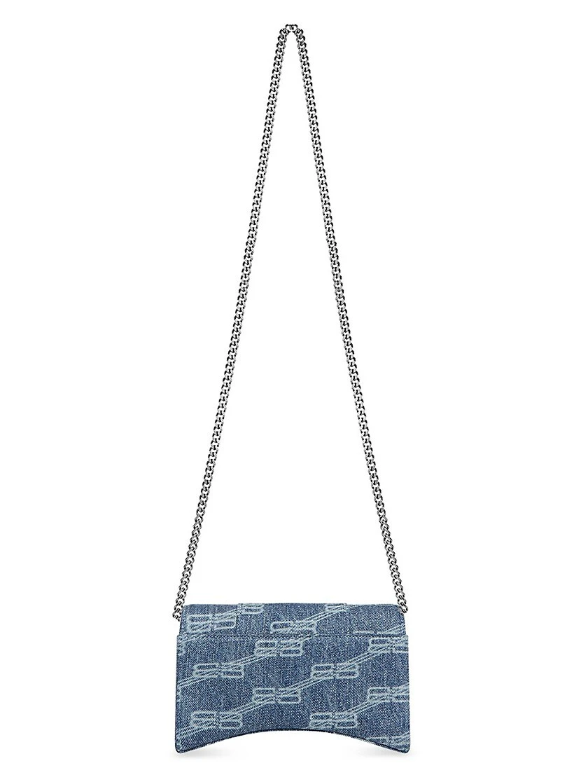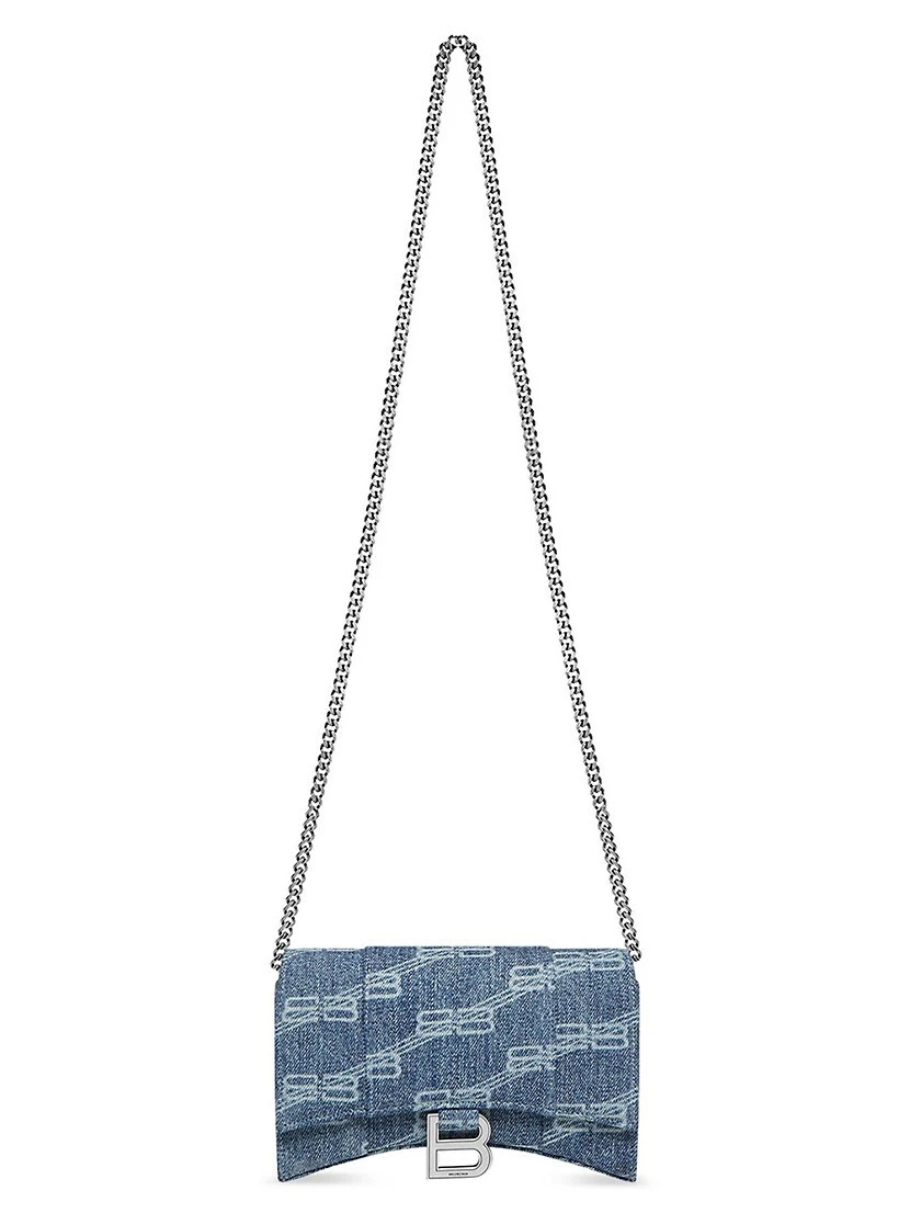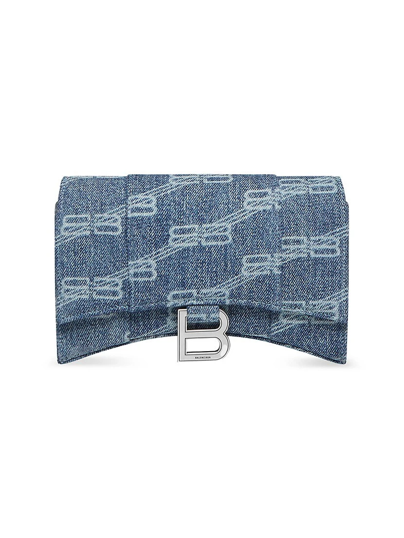 Hourglass Wallet With Chain in BB Monogram denim, aged-silver hardware.