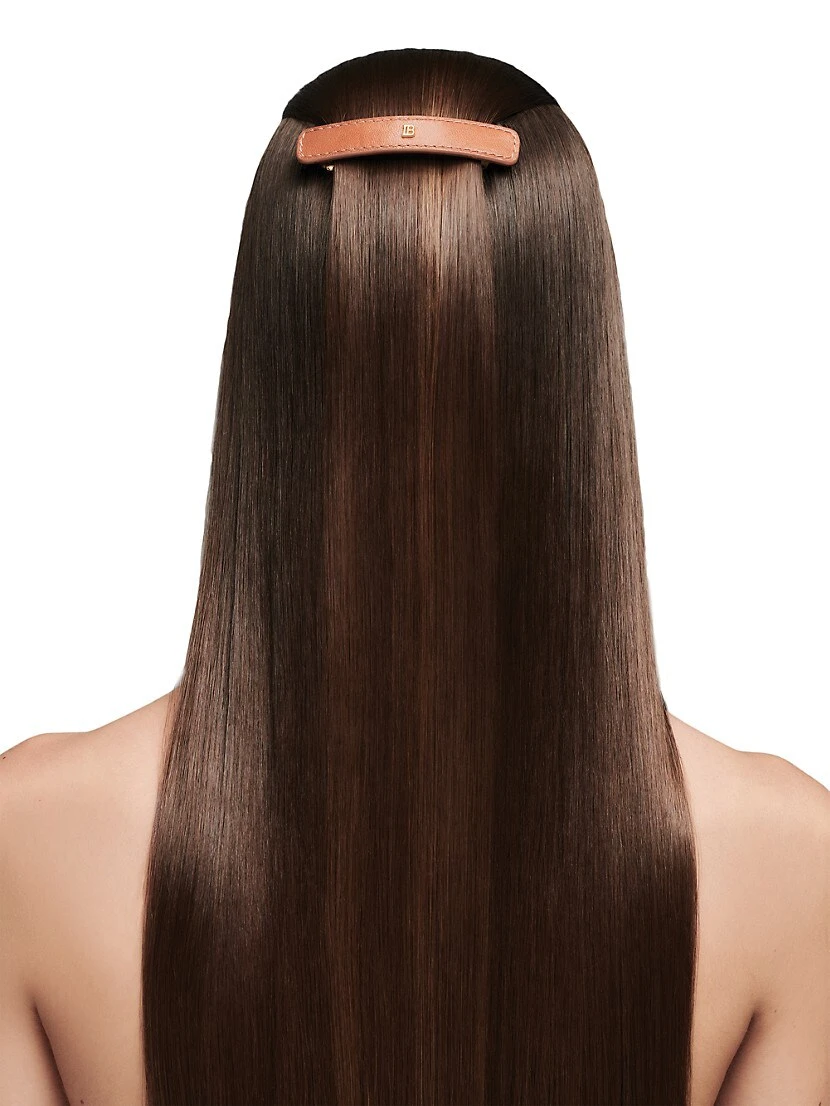 Limited Edition. Crafted of leather, this hair accessory features a high-quality genuine French clip underneath the barrette to ensure the perfect grip on the hair and can be worn to hold hair back from the face, adorn a ponytail, or enhance an updo. It is finished with signature stitching and Balmain’s sophisticated 18K gold-plated B logo. Includes polishing cloth. Manganese/ leather/ zamak. Imported. Imported.