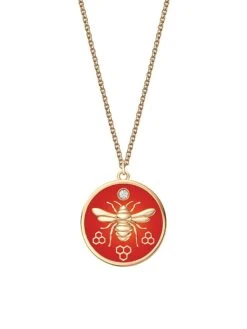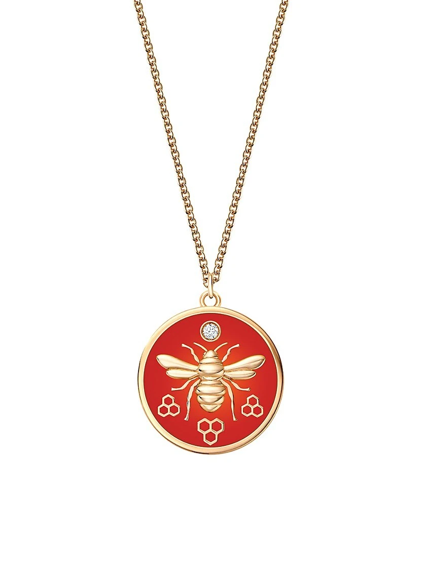 From the Bee Chic Collection. The iconic Birks bee is showcased in this medallion necklace, a modern heirloom piece, in eye-catching enamel and polished 18K yellow gold, expressing strength and a bold sense of character.