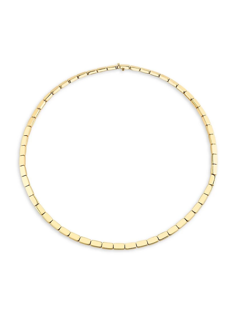 Polished rectangular links frame the face with gleaming 18K yellow gold.