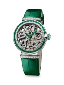 - Green alligator strap with 18K white gold first links set with brilliant-cut diamonds