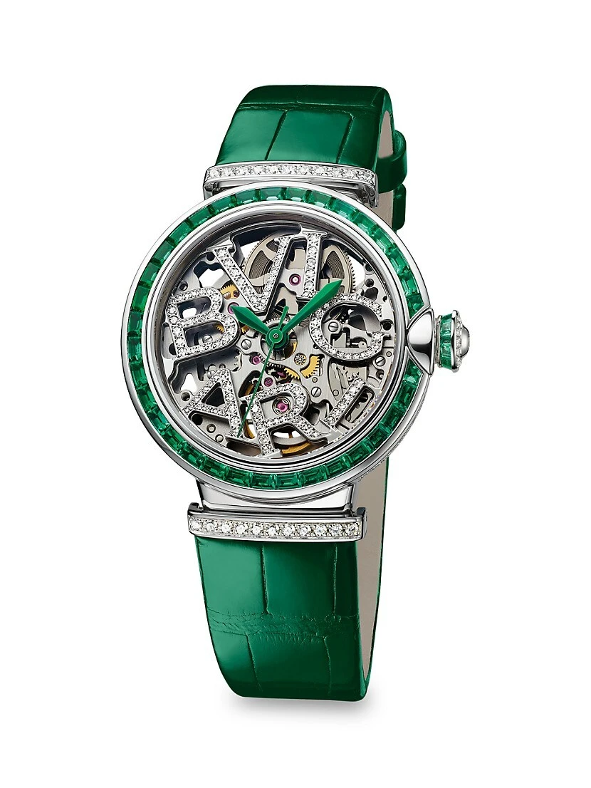 - Open work Bvlgari logo dial set with round brilliant diamonds