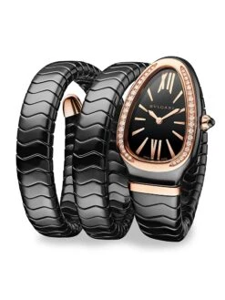 - Double spiral black ceramic bracelet with 18K rose gold trim