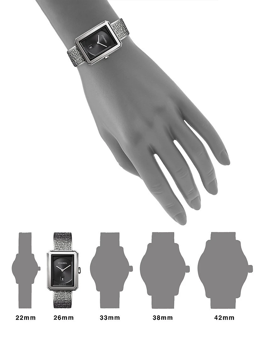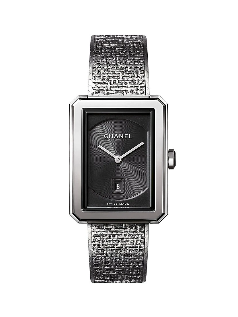 - Stainless steel strap with tweed motif
