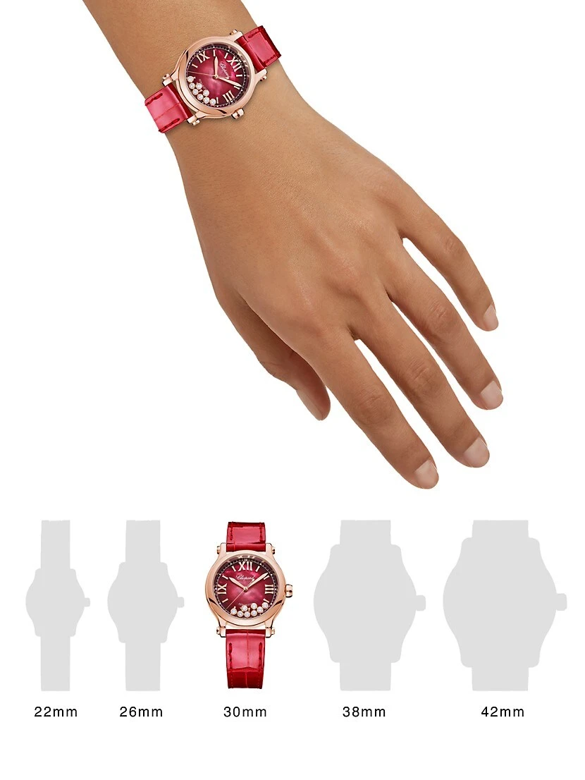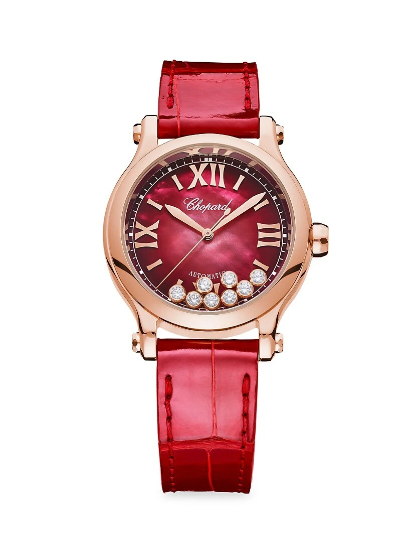 - Red mother-of-pearl dial with moving diamonds, 0.40 tcw