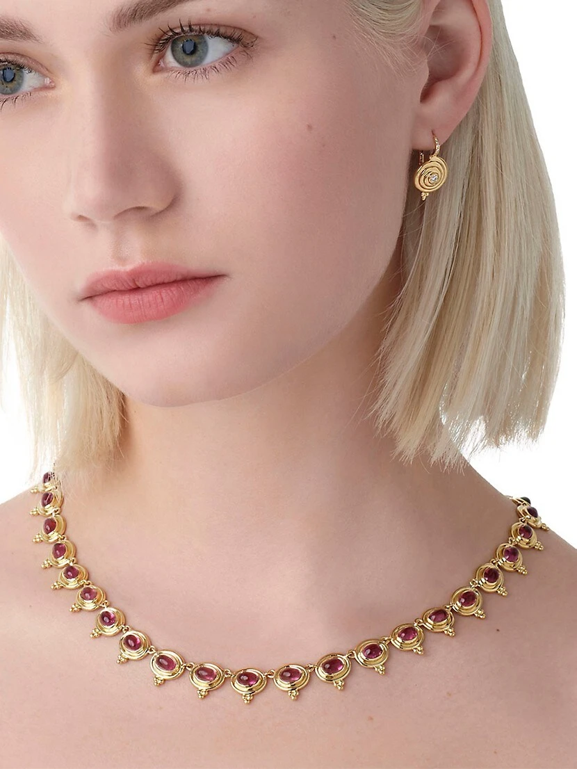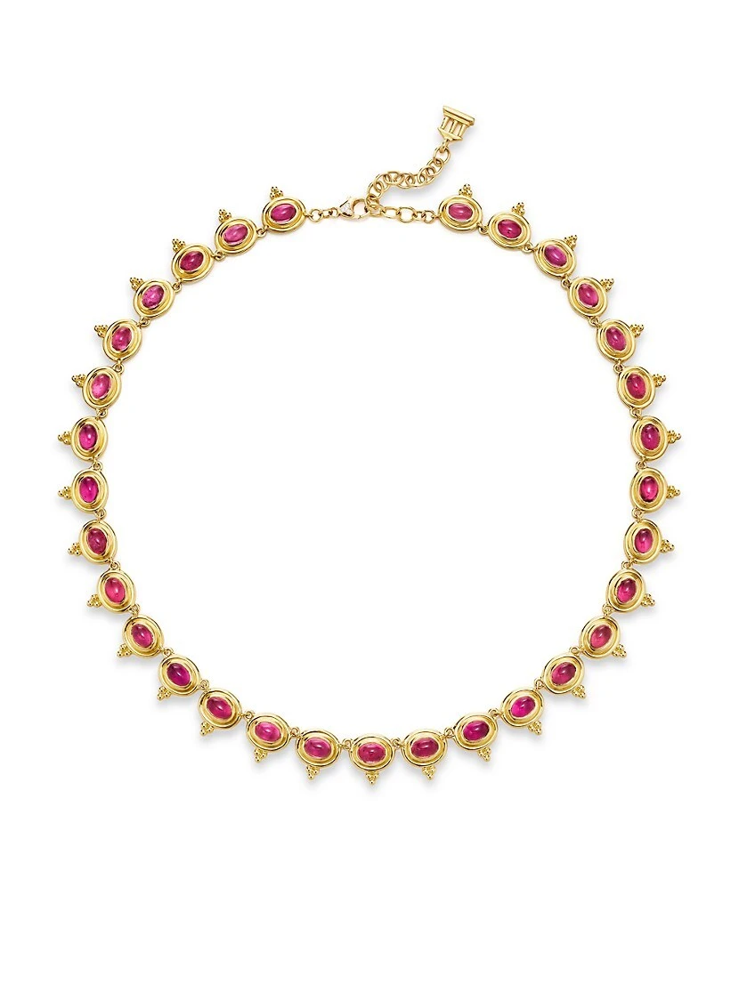 From the Classic Collection. A series of pink tourmaline pendants link in this beautiful necklace, designed to lay across the collarbone.