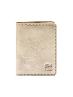 Designed with minimal detailing, Il Bisonte’s Classic bi-fold card case is made in Italy of grained metallic leather with a signature logo motif.