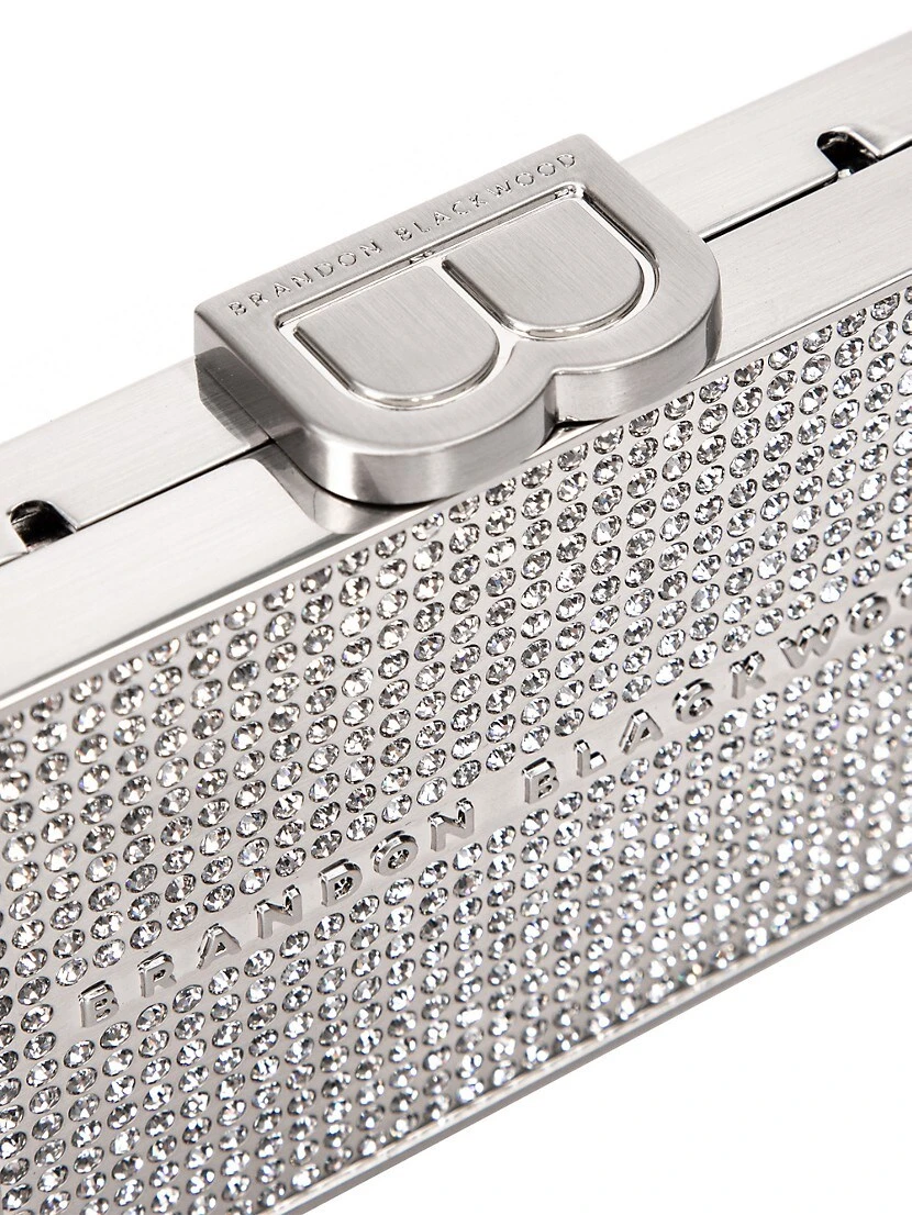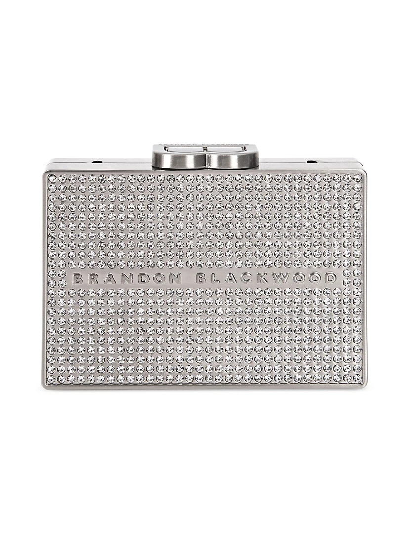 This card case from Brandon Blackwood flaunts crystal embellishments and a removable chain strap.