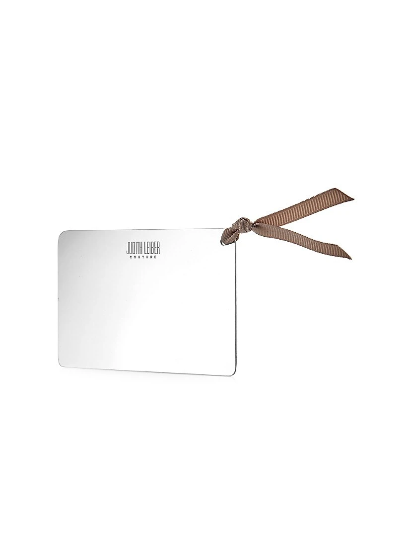 Made in Italy, Judith Leiber’s mirror case is dressed in lustrous crystals. This compact piece is accompanied by a logo-stamped mirror.