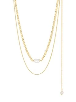 This necklace showcases a double-layered chain silhouette with a freshwater pearl pendant set on the first tier.
