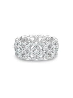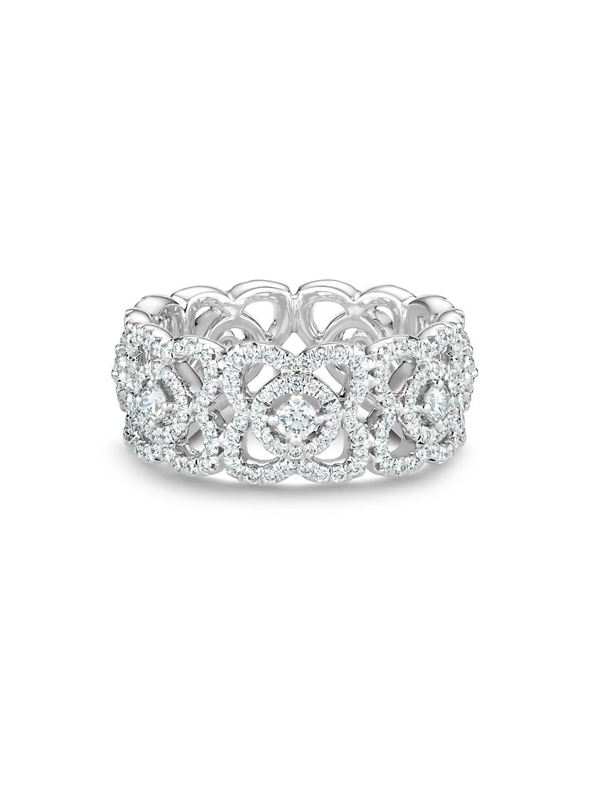 From the Enchanted Lotus Collection. Lotus flowers of diamond pavé gather to form a shimmering, striking ring, each set with petite center solitaire, in a design of fine 18K white gold.