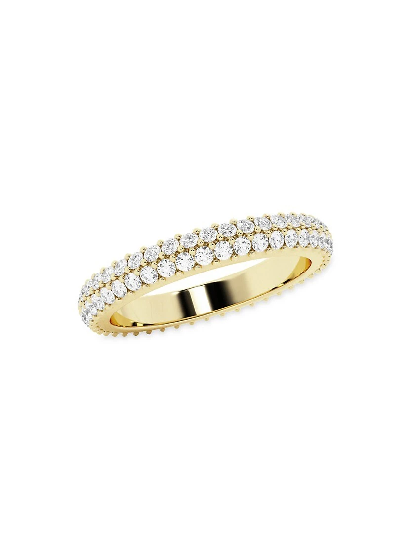 Crafted of polished 14K yellow gold, näas’ Ethereal eternity band shimmers with two rows of lab-created diamonds.