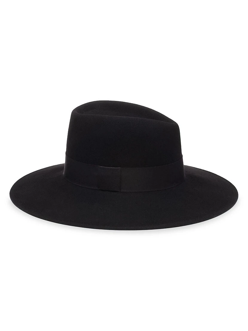 Crafted of wool felt, this wide-brim fedora hat features a tonal grosgrain band.