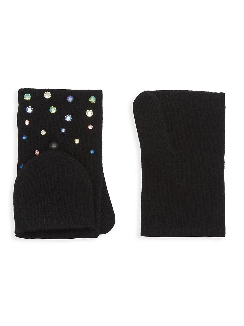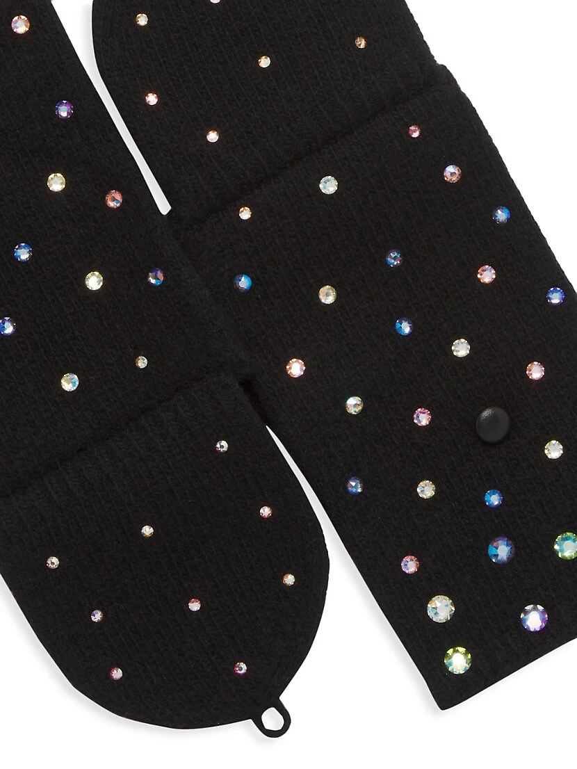 Carolyn Rowan Collection’s fingerless gloves are crafted of knit cashmere with sparkling crystal embellishments.