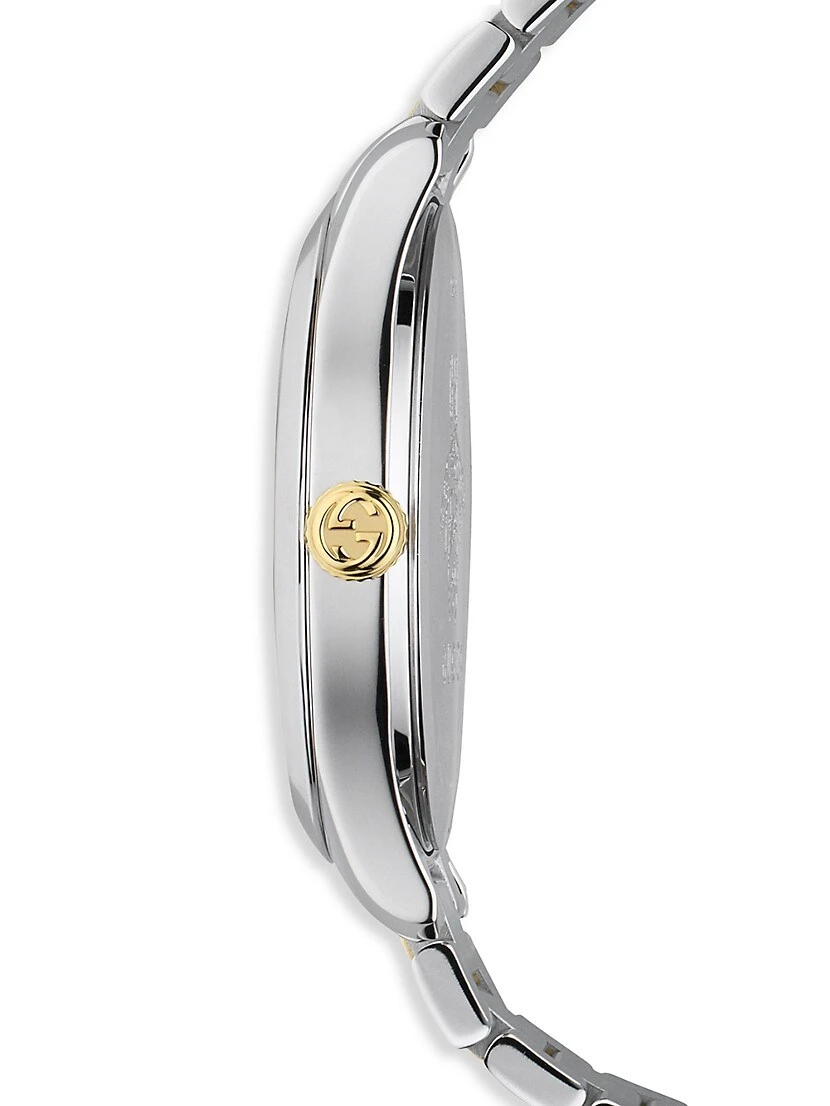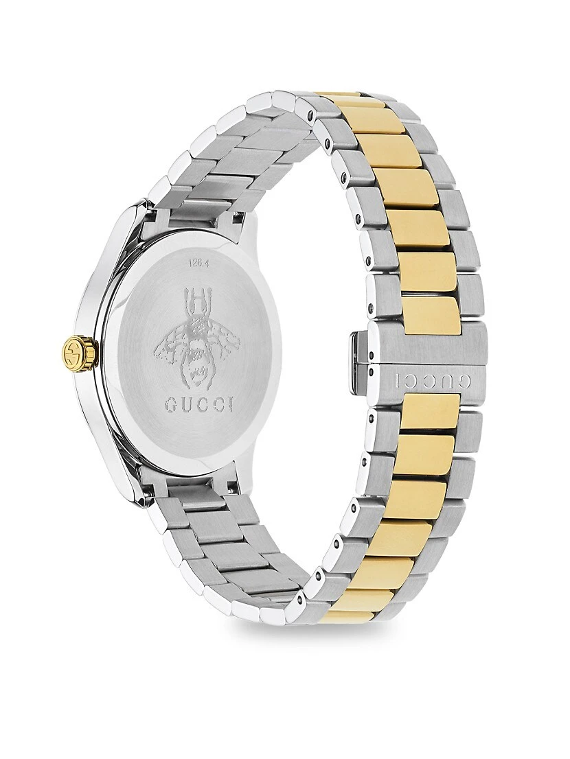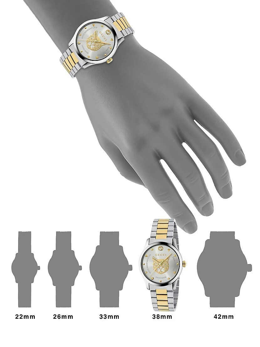 - Steel and yellow gold PVD case, 38mm (1.5″)
