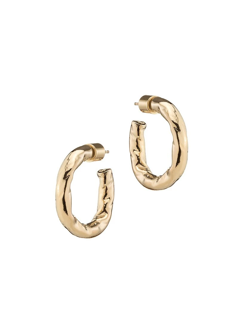 Completed with a textured finish, Jennifer Fisher’s Hailey oval huggie hoop earrings are crafted of 10K-gold-plated metal.