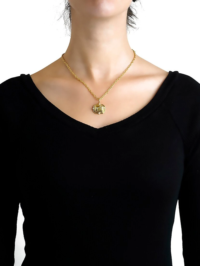 From the Gold Collection. A carved horse adds heirloom sensibility to an octagon pendant, accented with four diamonds. Meticulously handmade in 19K yellow gold with beveled edges and a hammered finish, using centuries-old techniques.