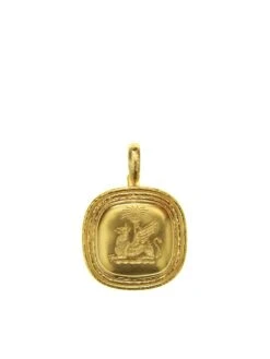 From the Gold Collection. A ‘Griffin and Palm’ design adds heirloom sensibility to a rounded square pendant finished with a step bezel. Meticulously handmade in 19K yellow gold with a hammered finish, using centuries-old techniques.