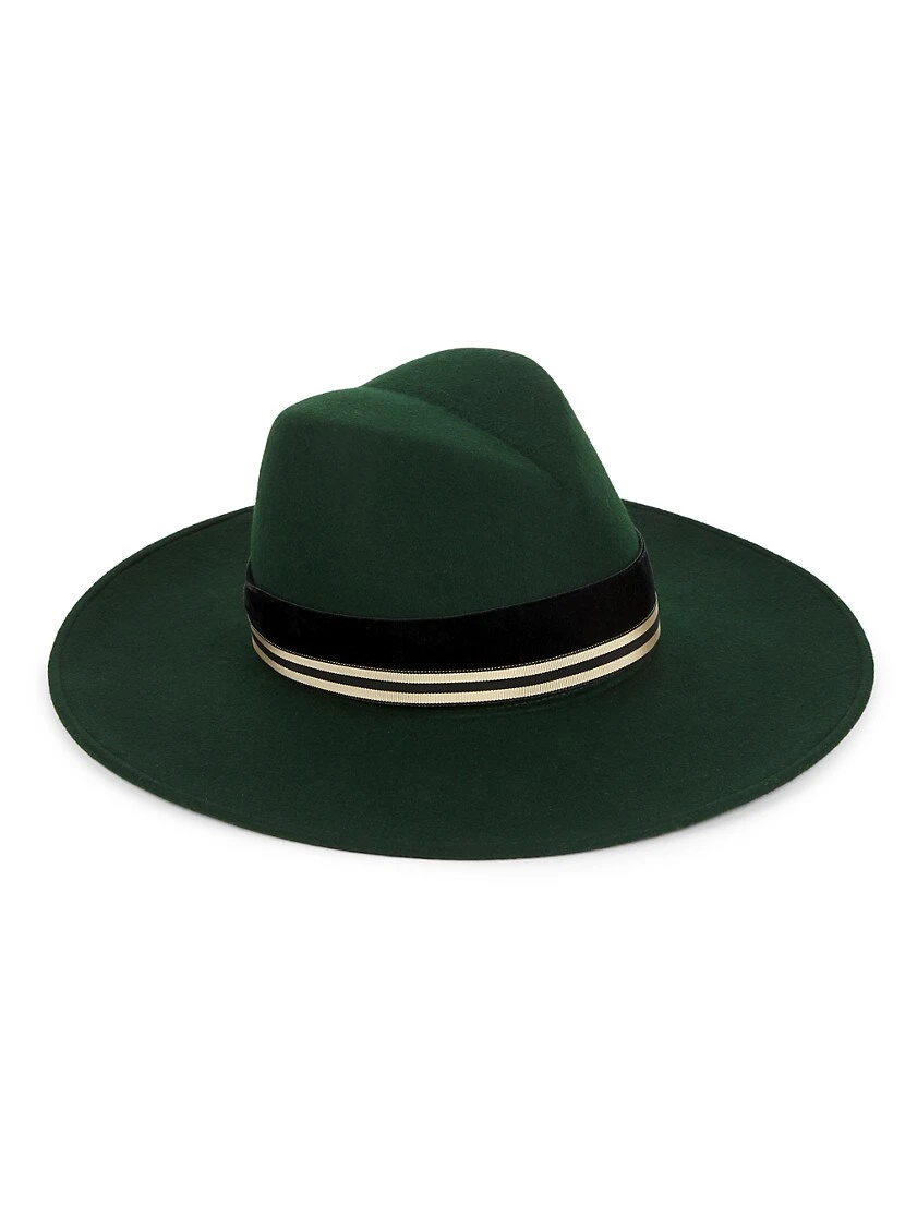 ONLY AT SAKS. Gigi Burris’ Jeanne hat is cut from felted fabric and showcases century-old craftsmanship. Made in New York City, this brim-style silhouette is wrapped with a striped grosgrain and velvet band.