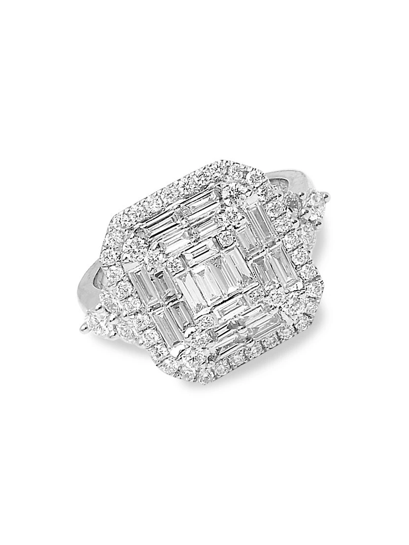 From the Engagement Collection. Incredibly glamorous, this DJULA ring features mixed cuts of glittering diamonds arranged in a statement-making geometric silhouette.