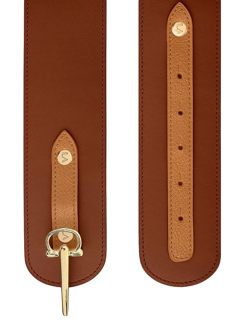 From the Outstanding Belts Collection. Made in France of rich leather, Vaincourt’s La Gracieuse corset belt stands with a polished horsebit buckle.