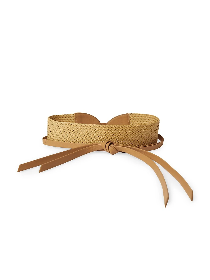 Wide waist belt crafted of cotton webbing with leather details.