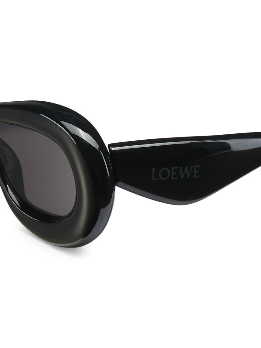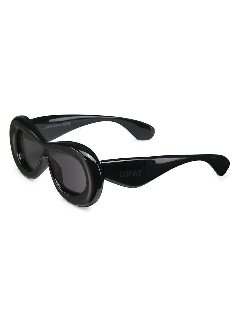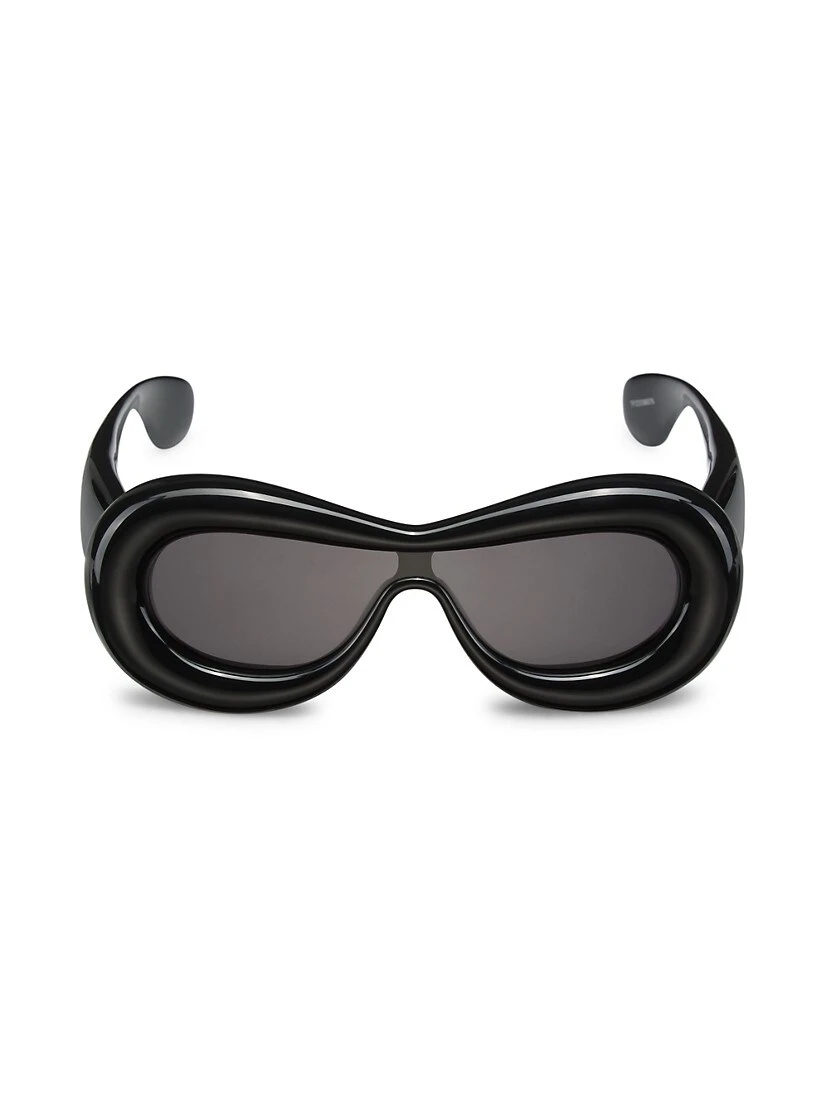 These futuristic mask sunglasses from Loewe are crafted of inflated acetate with a silkscreened logo on the temples.