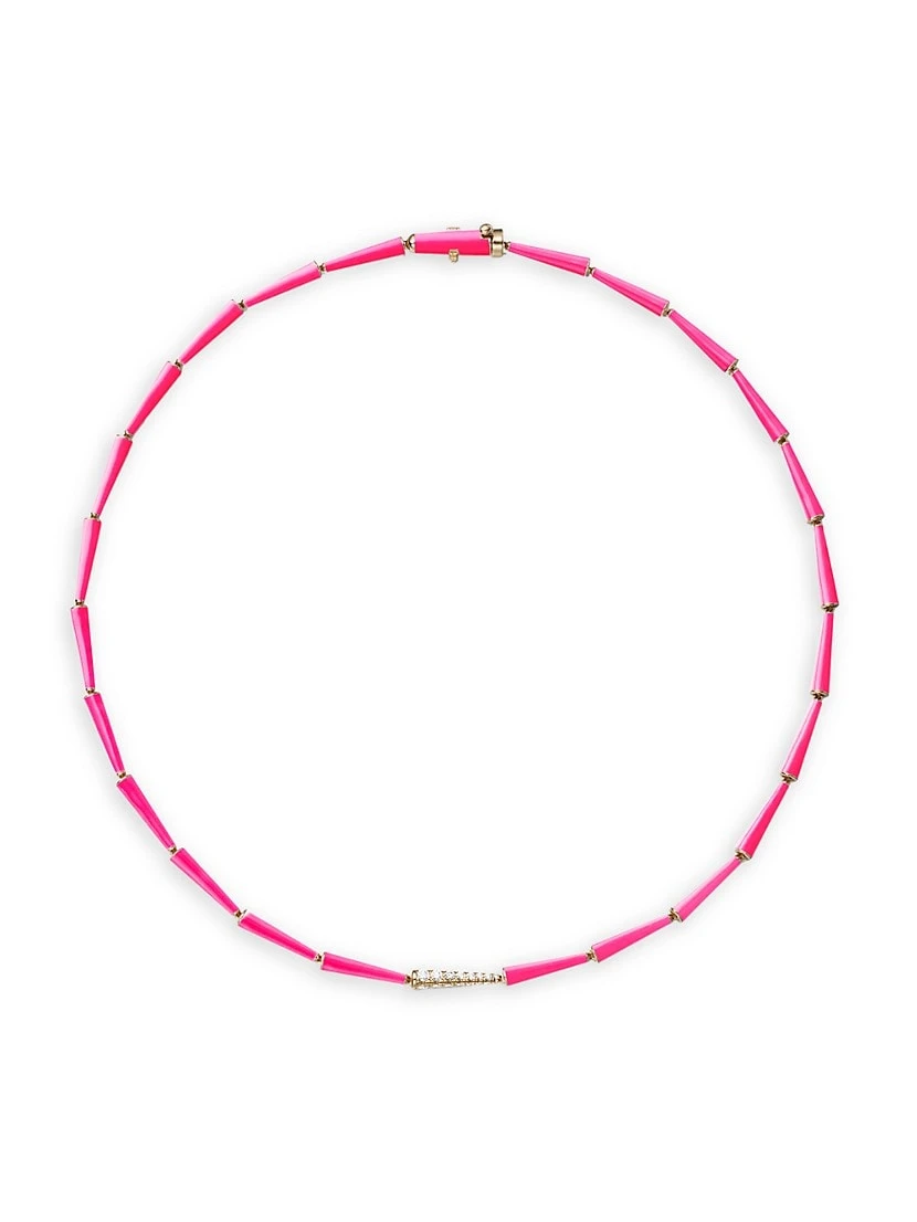 From the Lola Collection. Melissa Kaye’s unique necklace is crafted of 18K pink gold. This piece features sculpted links coated in neon pink enamel and a single diamond-encrusted link.