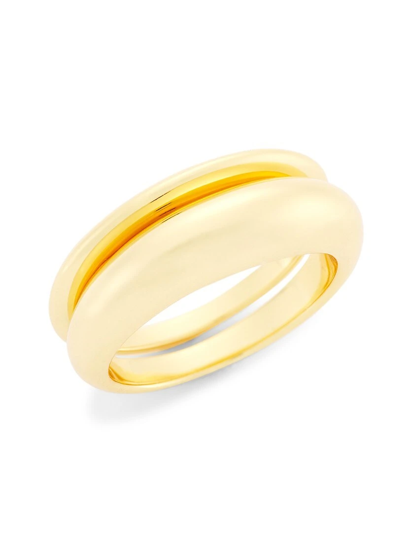 This two-piece ring set features a minimal design with dual bands of varying widths cast in polished 24K gold-plated brass.
