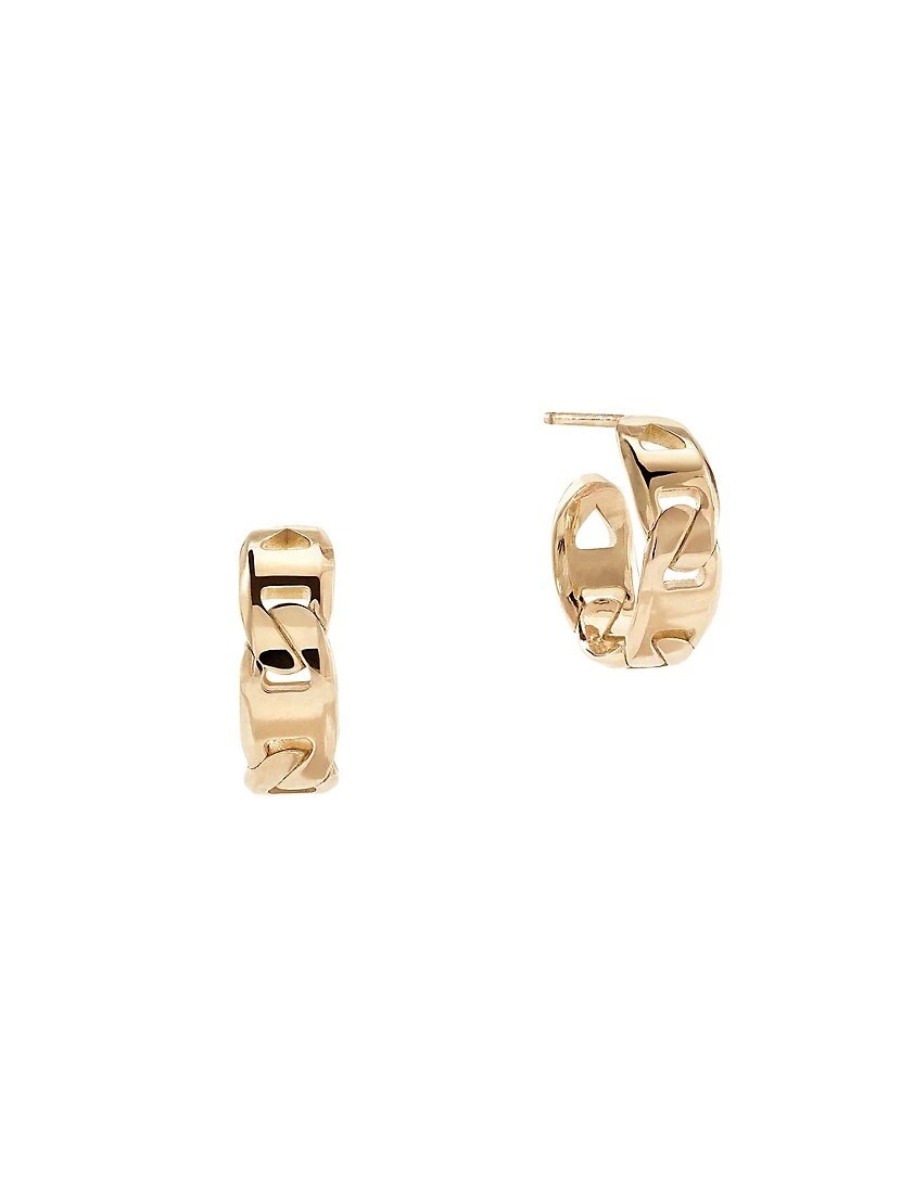 Lana Jewelry’s Malibu chain huggie hoop earrings are crafted of 14K yellow gold. Completed with a polished finish, this chic pair is from the label’s Twenty Vol. 1 Collection, a line of modern yet timeless pieces released in celebration of the brand’s 20th anniversary.
