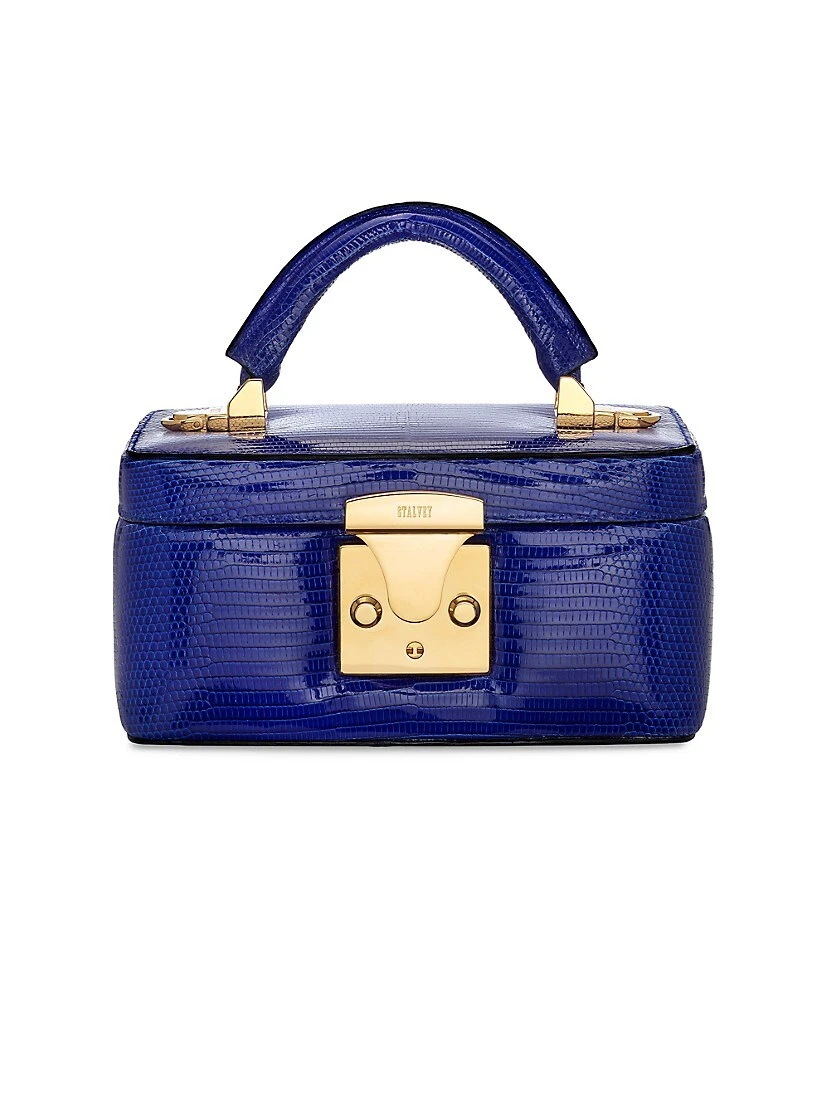 A modern take on a signature silhouette, Stalvey’s Beauty Case 1.7 is made in Italy of genuine lizard in a vintage boxy shape. This architectural piece is styled with a polished logo-engraved lock closure.