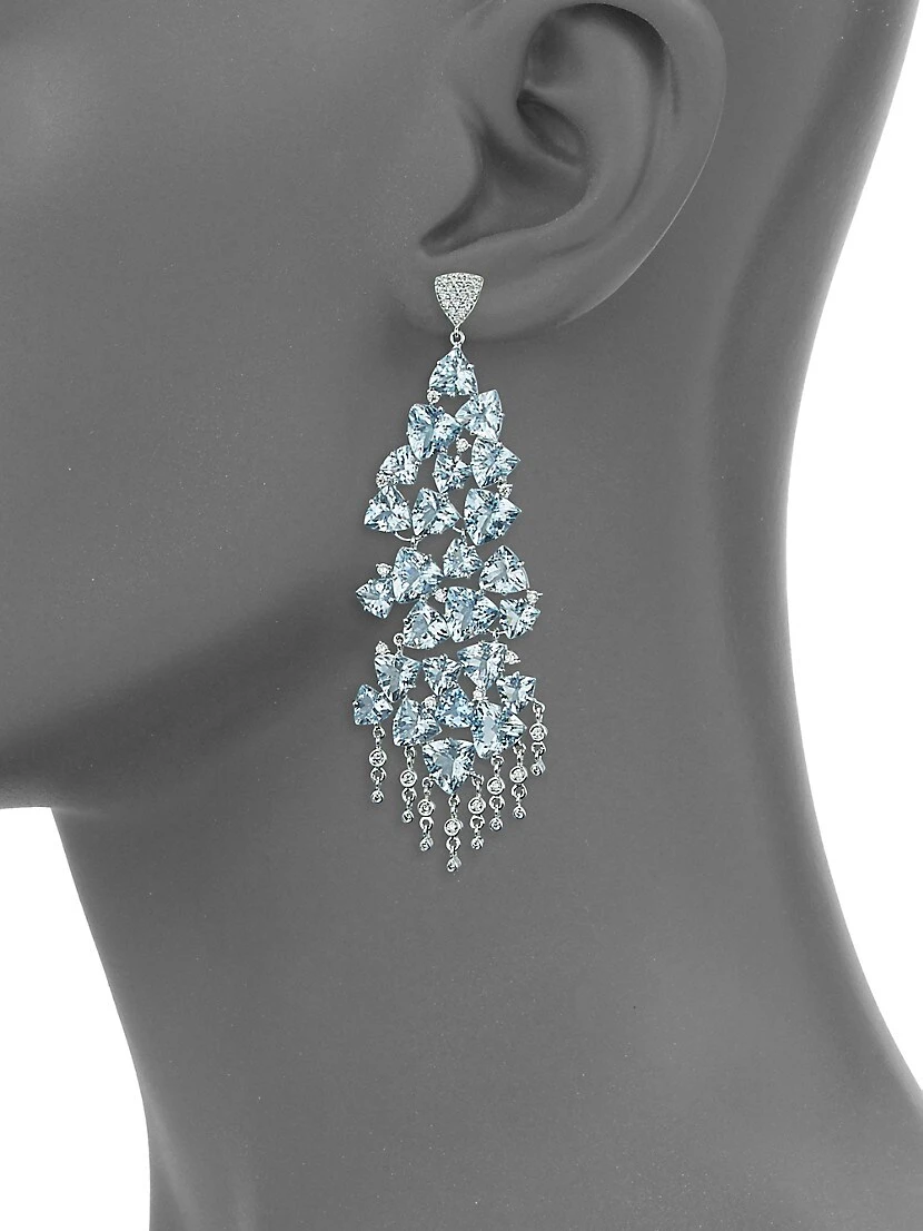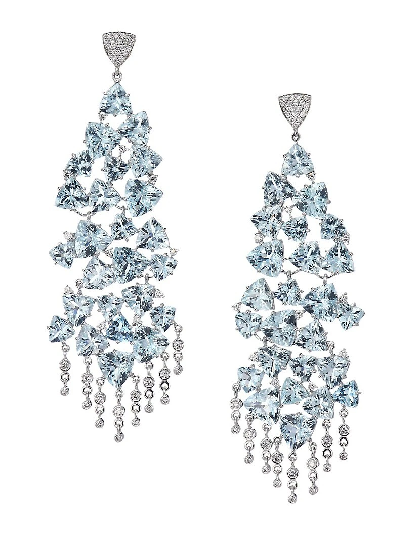 From the Mirage Collection. Showstopper chandelier earrings boasting dazzling diamonds and blue aquamarine gemstones.