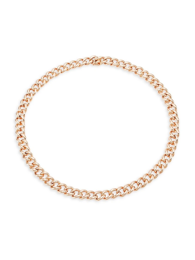 This 18k rose gold necklace features a bold chain and hidden back clasp.